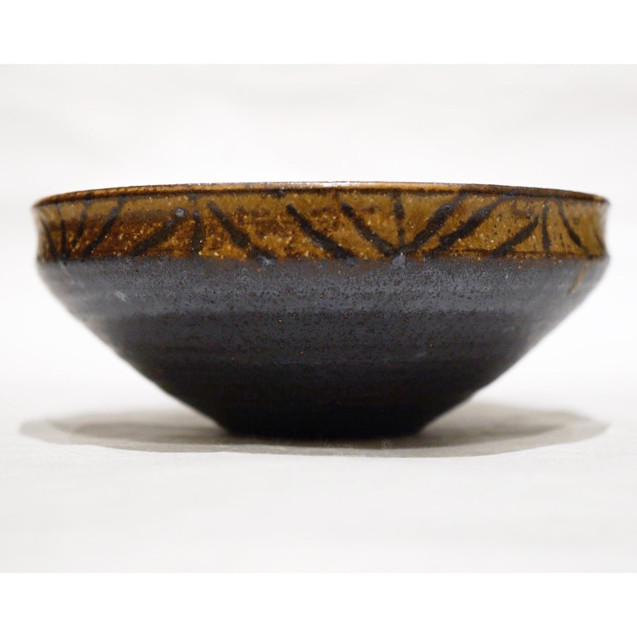 ヘリンボーンの陰影が味わい深い、鉄絵の鉢です。